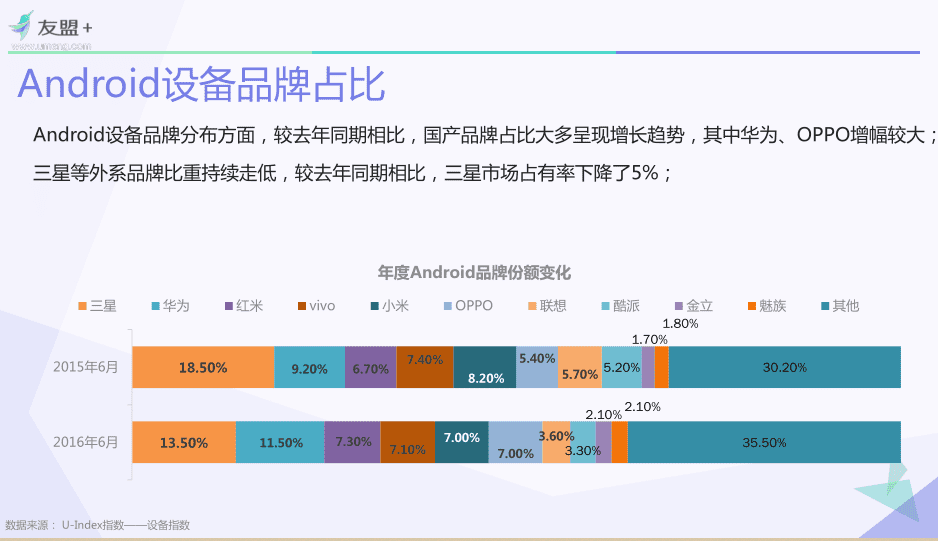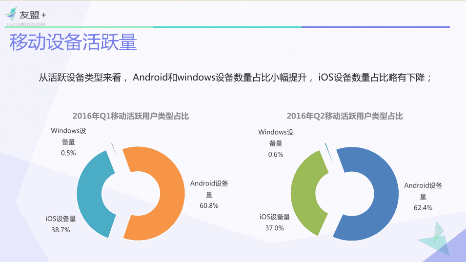 • 截至2016年Q2,国内活跃设备总量超13亿,不Q1相比增长1.75%。
