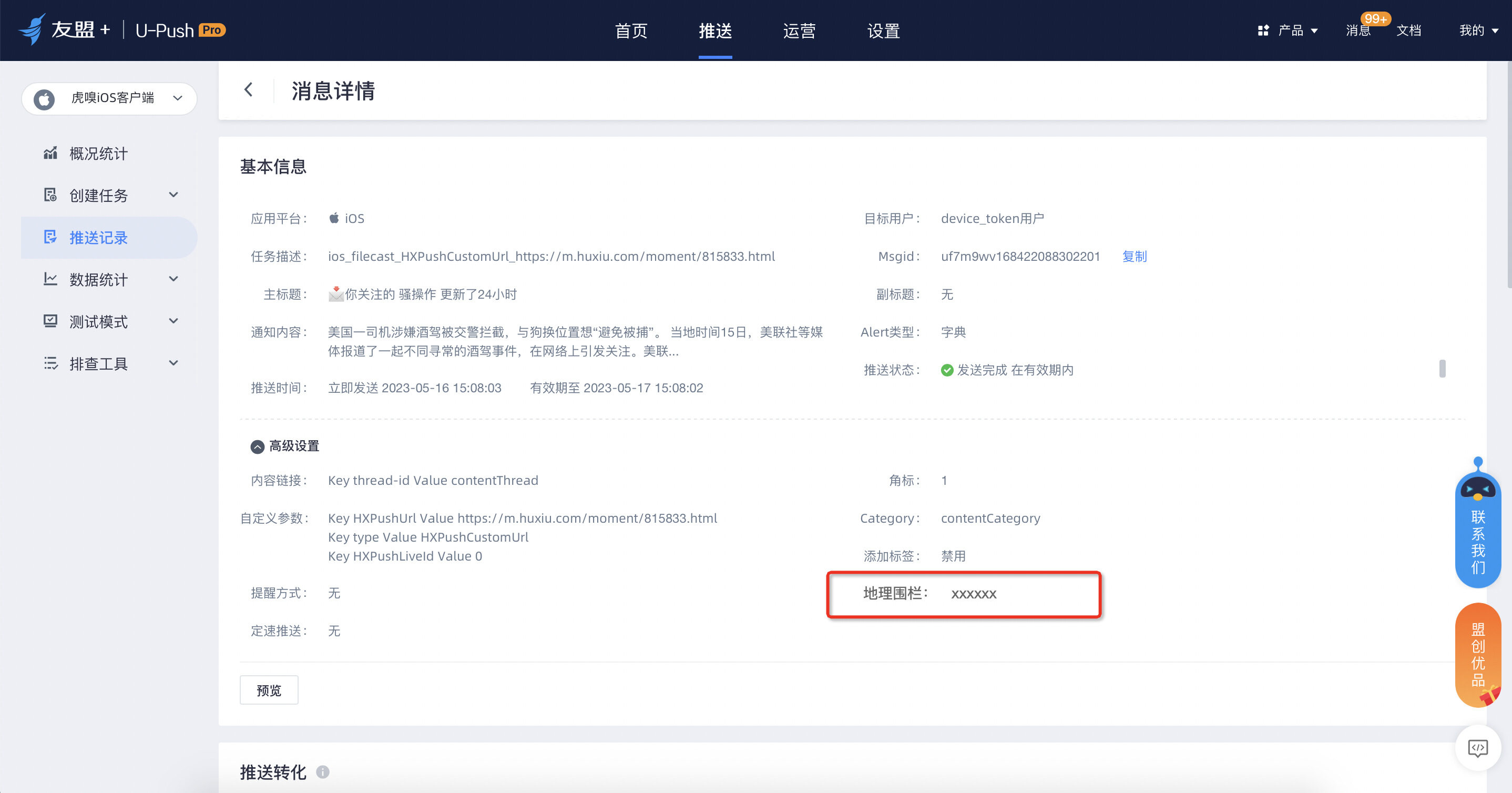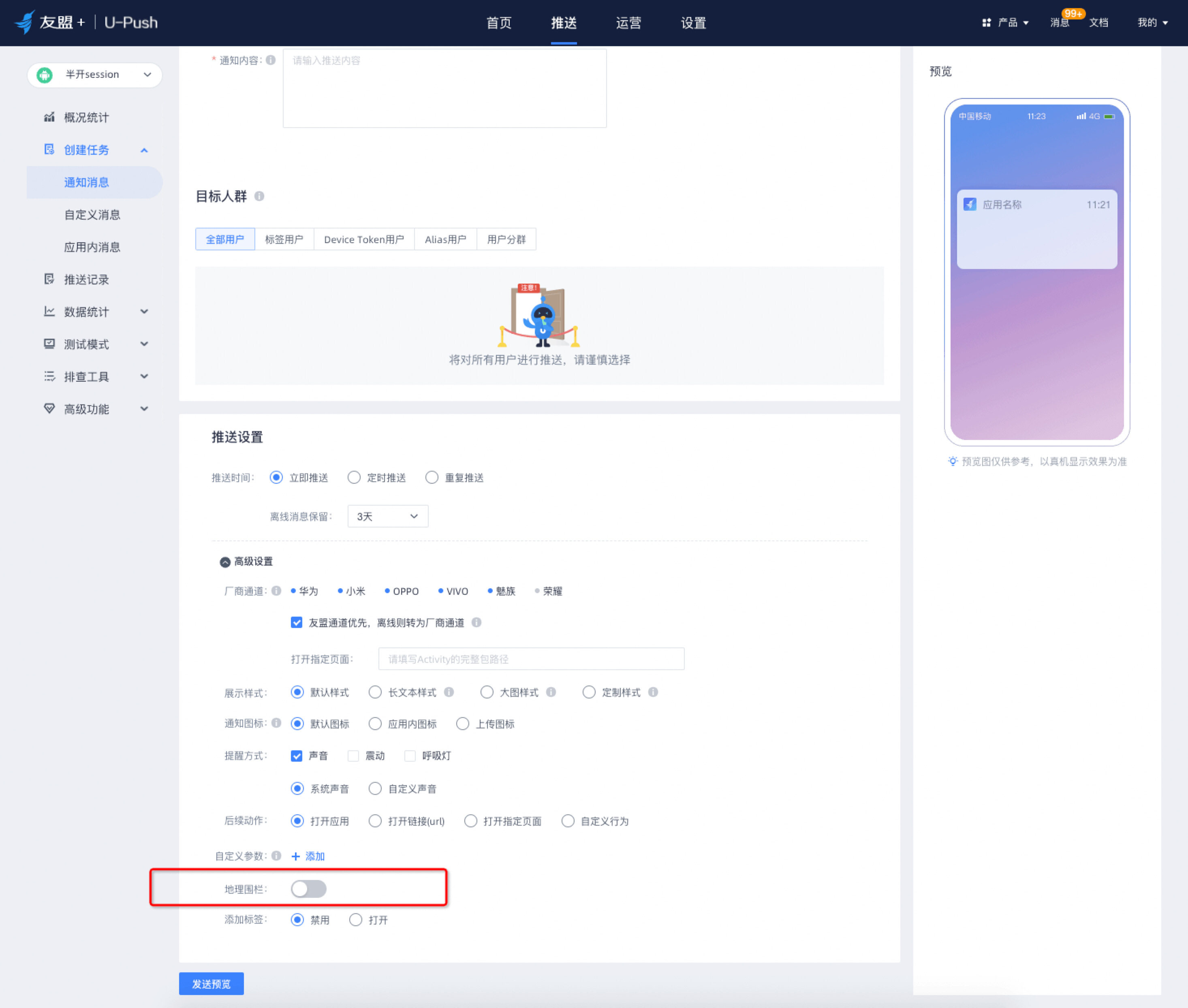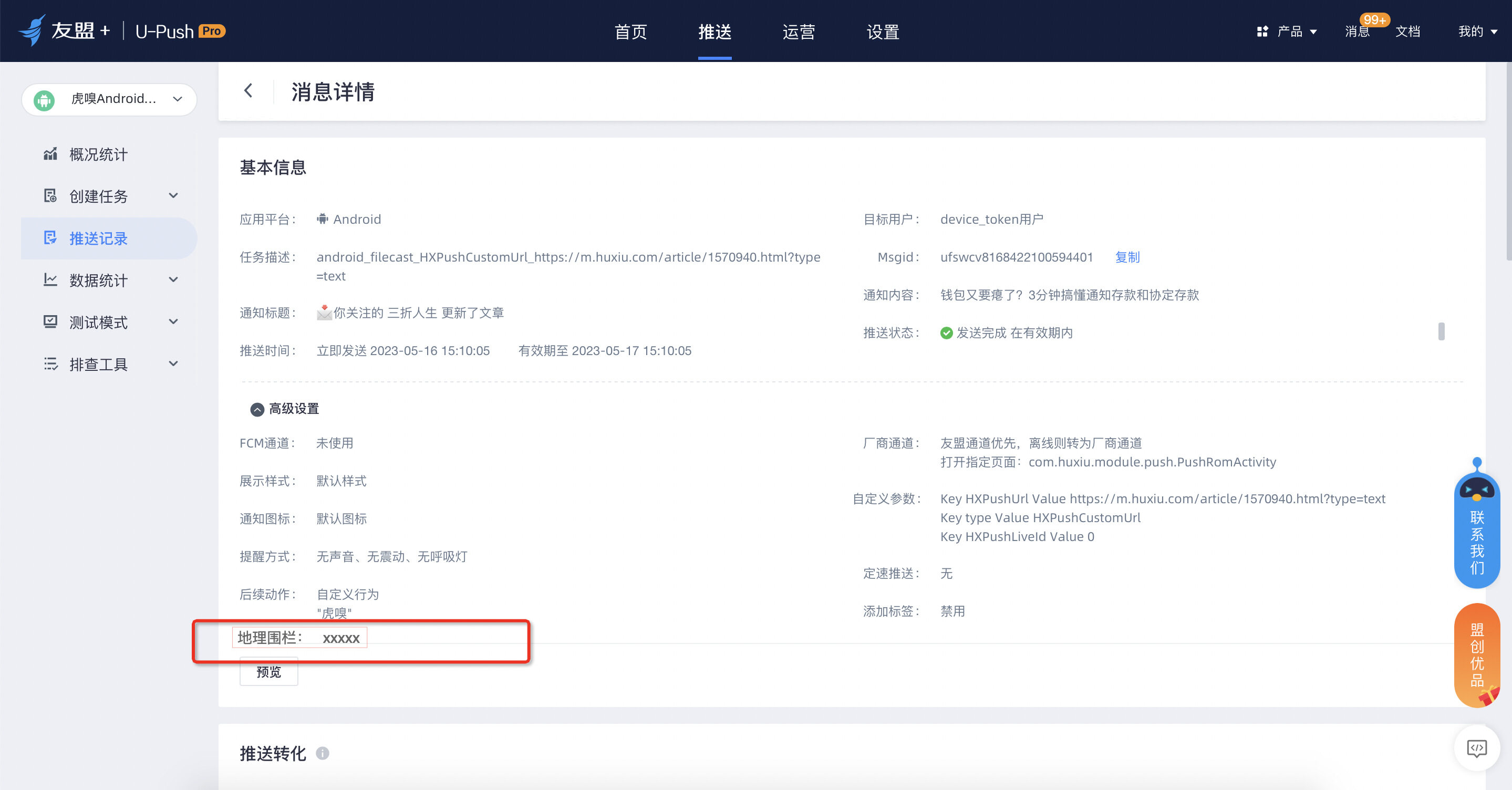 4.2针对地理围栏推送任务的消息详情-高级设置