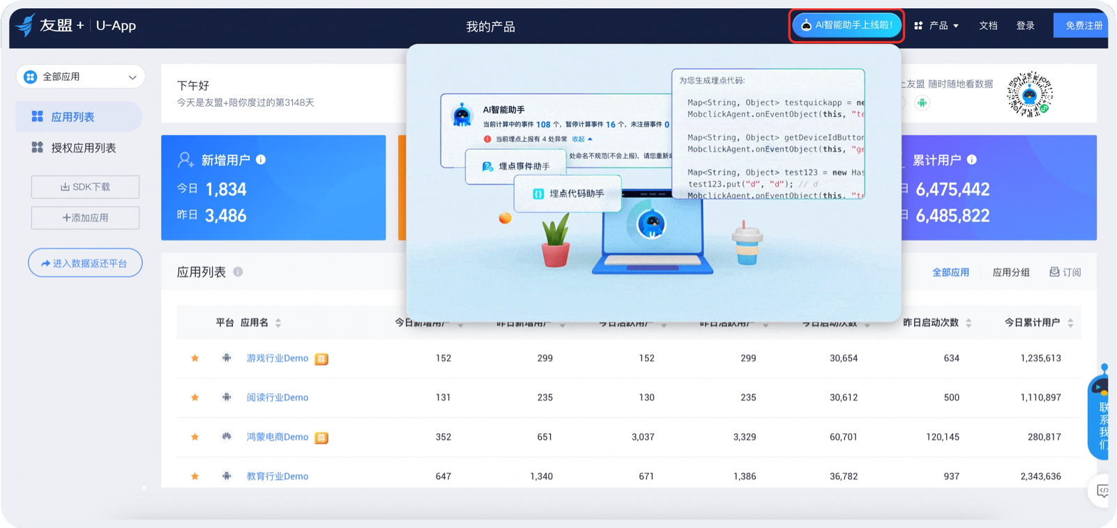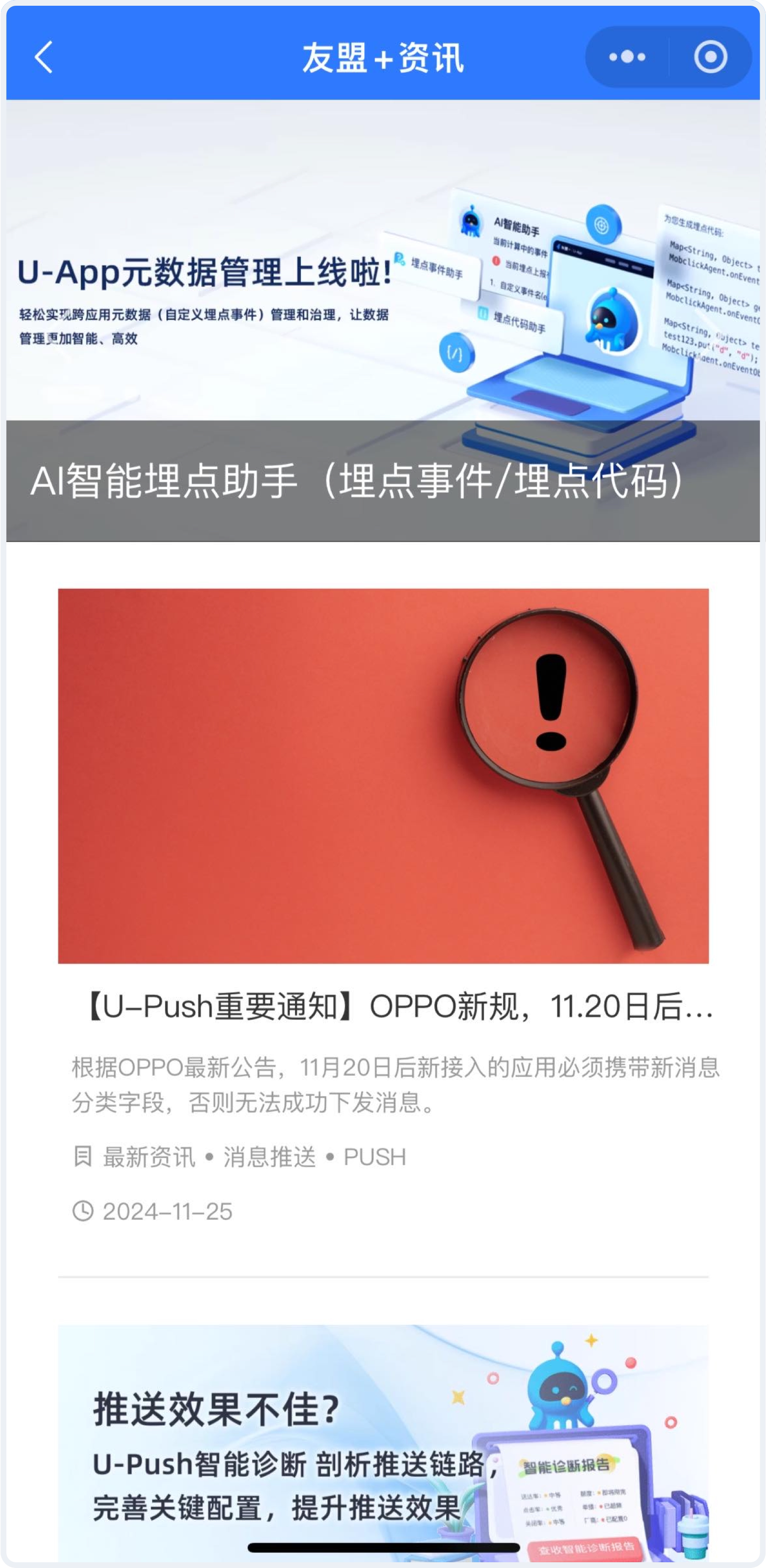 此次产品升级涉及U-Push、U-App、U-APM、U-Verify、友盟小程序;