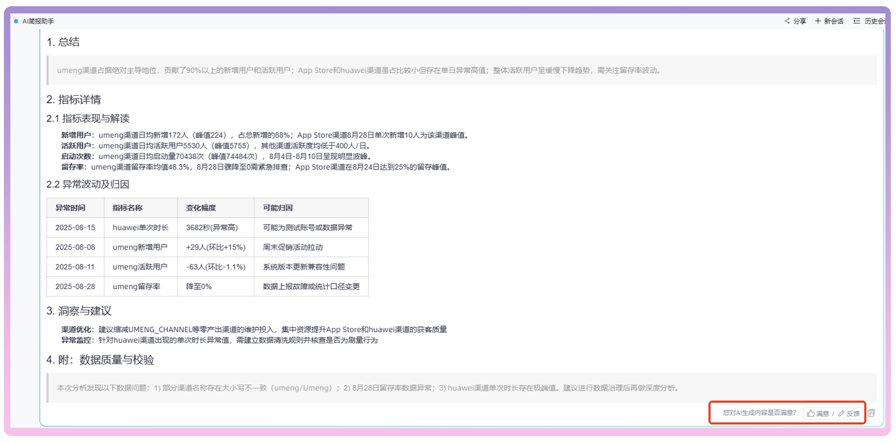 2.2 简报样式优化:结构化数据展示,异常归因更直观