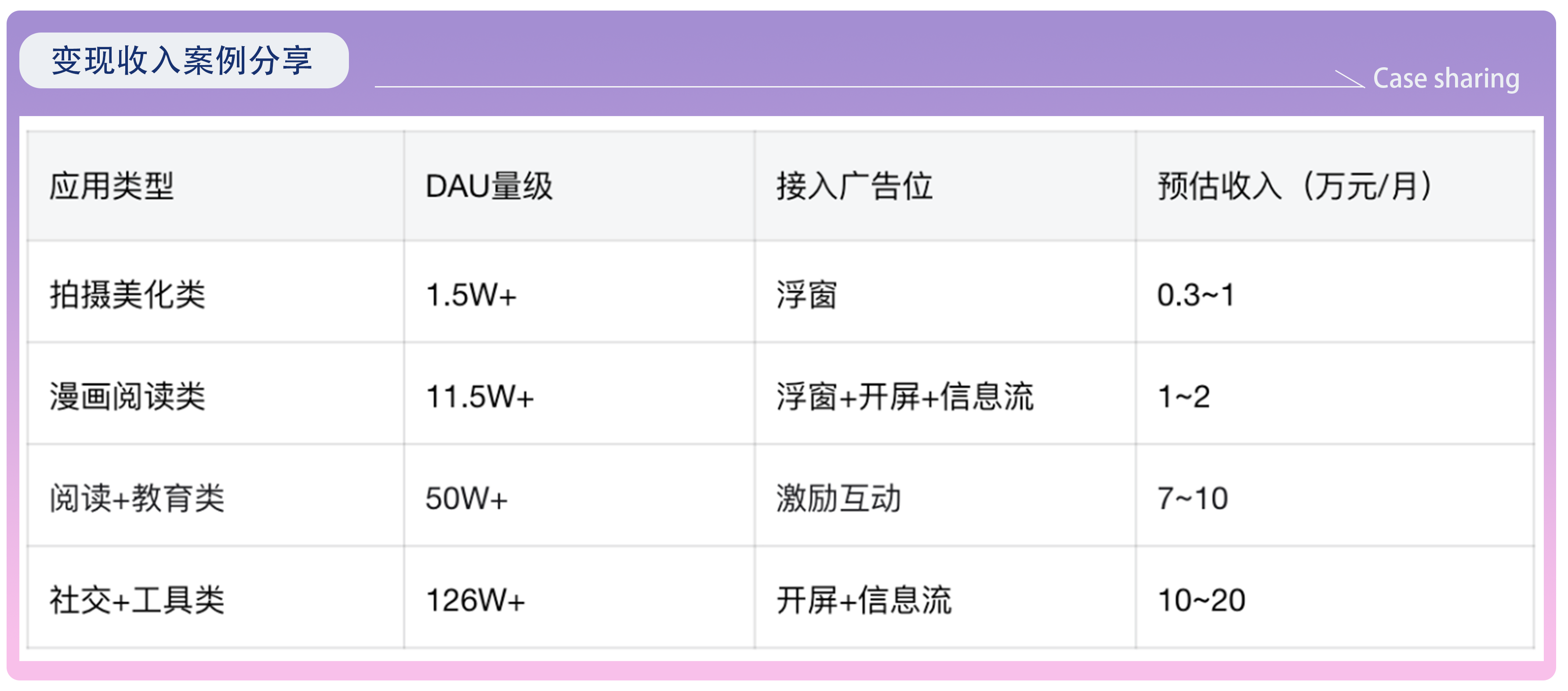 U-AppWin结合应用属性搭建多元广告体系:通过广告位协同,精细化布局;为不同发展阶段、不同类型的应用带来海量收益。