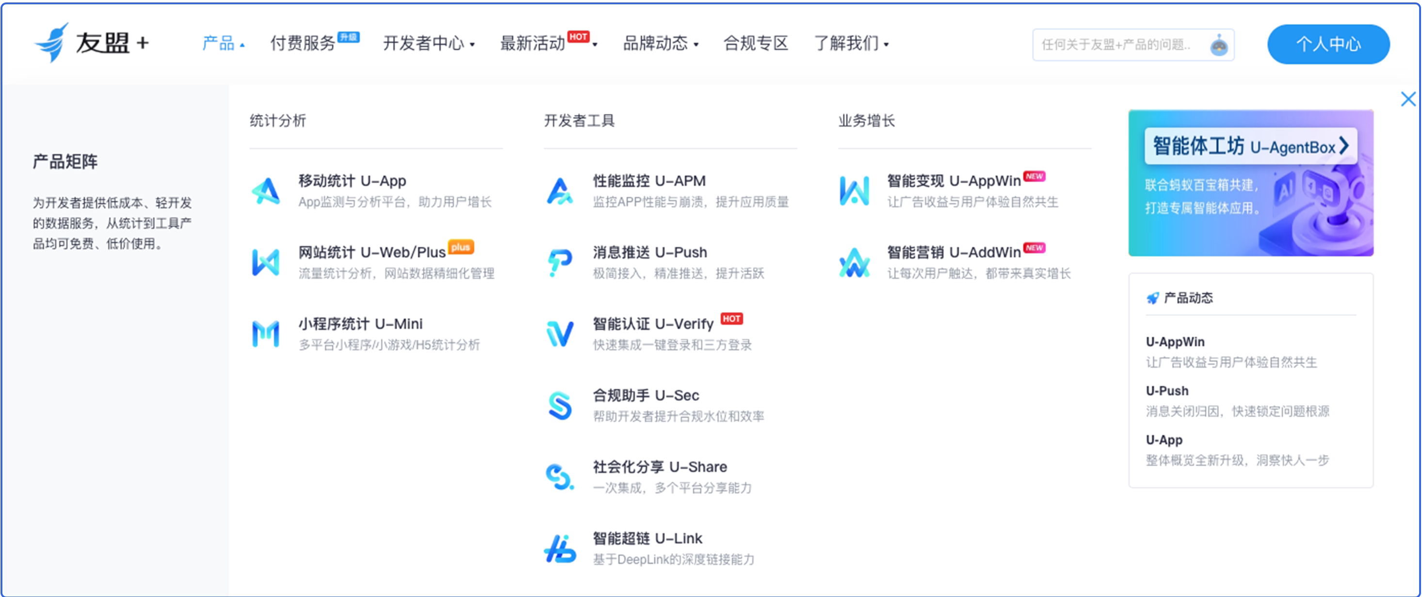友盟+与蚂蚁百宝箱达成深度战略合作,聚焦开发者智能 Agent 落地痛点,以 “体验前置、无缝衔接、轻量化开发” 为核心,打通友盟+平台生态与蚂蚁百宝箱底层技术能力,让每一位友盟+开发者都能低成本、高效率地在自有 App 内集成专属智能 Agent,加速业务智能化落地。