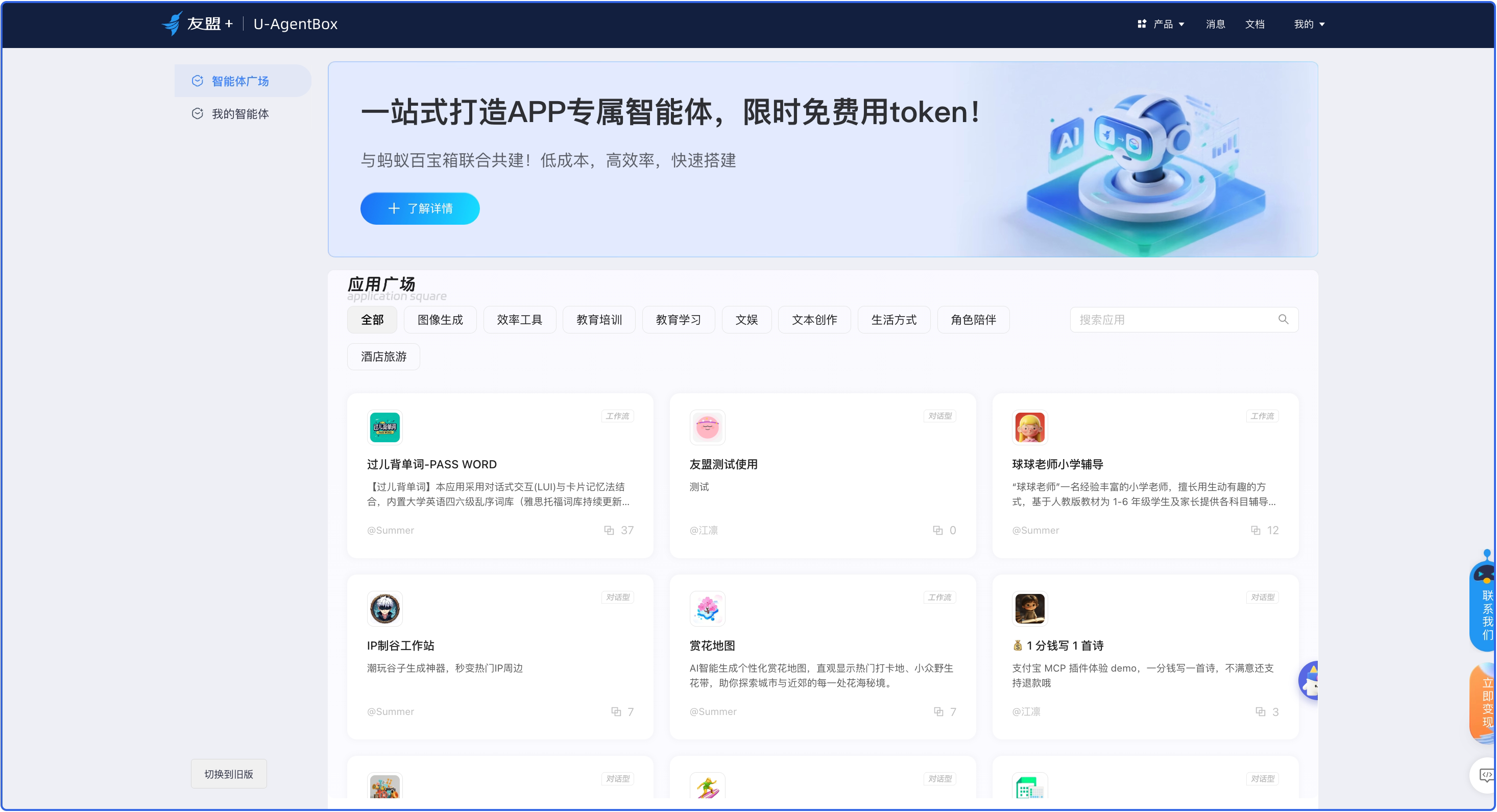 开发者无需离开友盟+生态,即可直接预览体验教育、办公等多领域的成熟 Agent 模板,实时感受交互效果与适用场景,决策更直观。